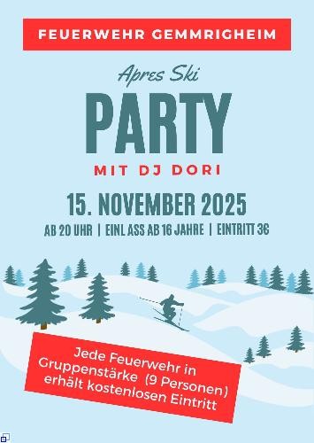 Zieht eure Skijacken an und spitzt die Ohren – die Freiwillige Feuerwehr Gemmrigheim lädt euch herzlich zur legendären Apres Ski Party ein!